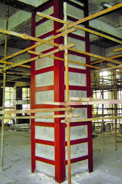 粘鋼/包鋼加固技術是將鋼板采用高性能的環氧類膠粘劑粘于混凝土構件表面,使鋼板與混凝土形成統一的整體,利用鋼板良好的抗拉強度達到增強構件承載力及剛度的目的,用結構膠粘劑粘結的鋼板基本不增加被加固構件的尺寸及重量,結構膠固化快,完全固化后即可承載受力。